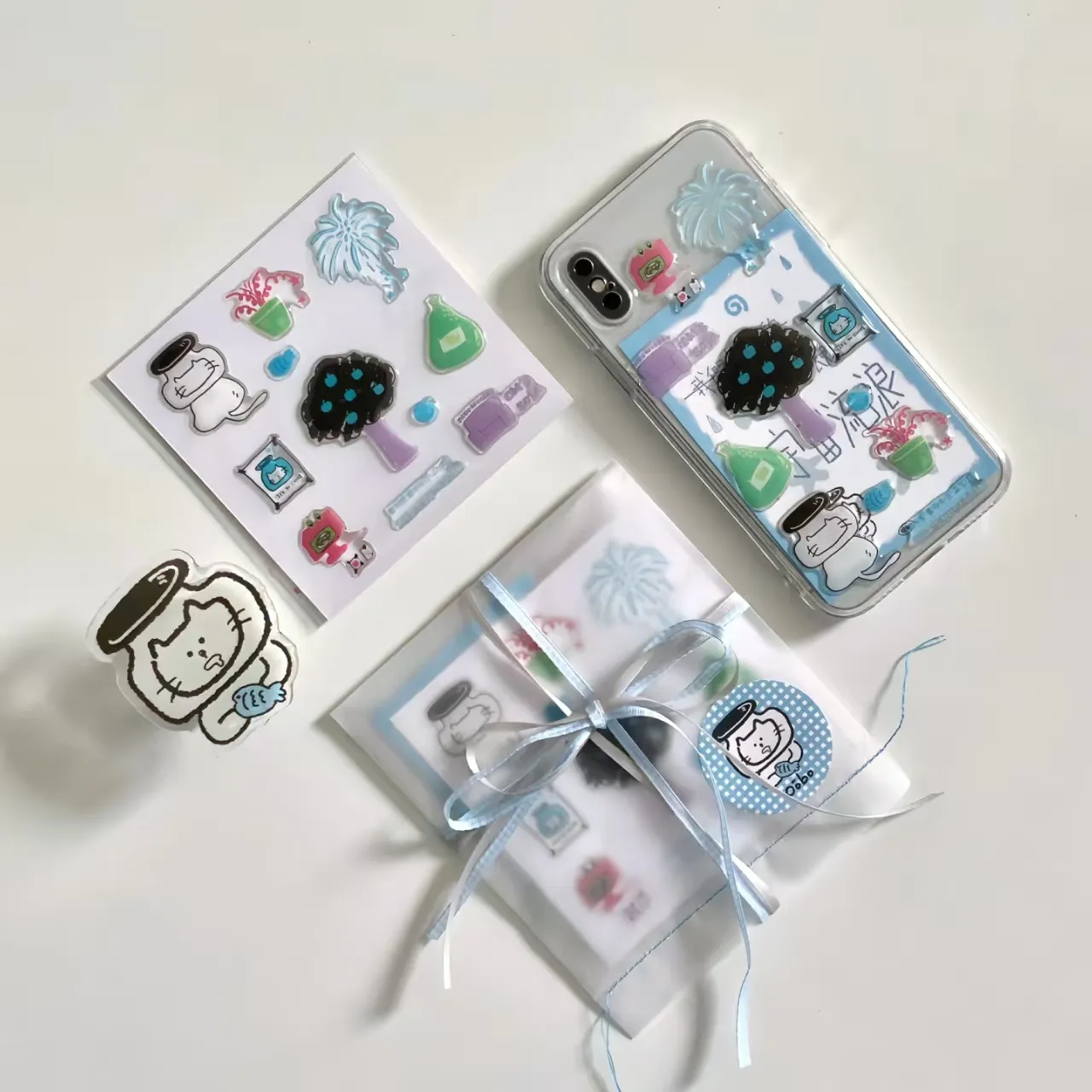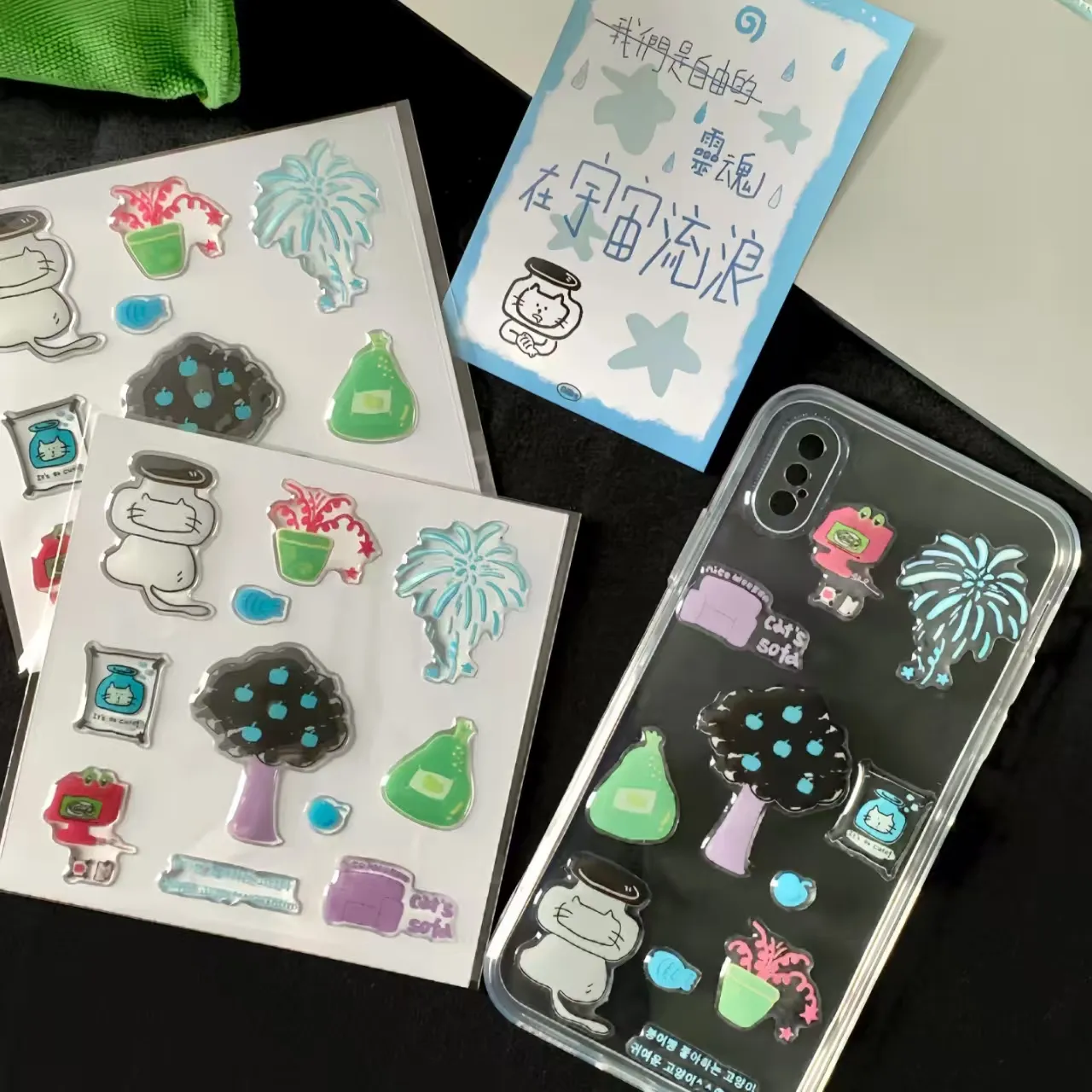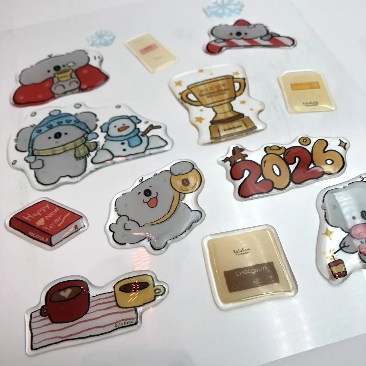 3डी कार्टून एपॉक्सी रेज़िन स्टिकरकार्टून-थीम वाले डिज़ाइन वाले अनुकूलित 3डी डिकल्स हैं। प्रत्येक स्टिकर को उच्च-पारदर्शिता एपॉक्सी राल की एक परत के साथ लेपित किया जाता है, जिसे एक मोटी, चिकनी और लोचदार उभरी हुई बनावट बनाने के लिए ड्रिप-गोंद प्रक्रिया के माध्यम से ठीक किया जाता है।