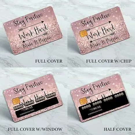 सुरक्षा: क्रेडिट कार्ड कवर स्टिकर कार्ड की सतह को खरोंच, खरोंच और मामूली घर्षण से बचा सकते हैं, जिससे कार्ड की स्थिति और मुद्रित जानकारी, जैसे कार्ड नंबर, समाप्ति तिथि और कार्ड धारक का नाम की स्पष्टता बनाए रखने में मदद मिलती है। कुछ स्टिकर गंदगी और नमी से कुछ हद तक सुरक्षा भी प्रदान कर सकते हैं।