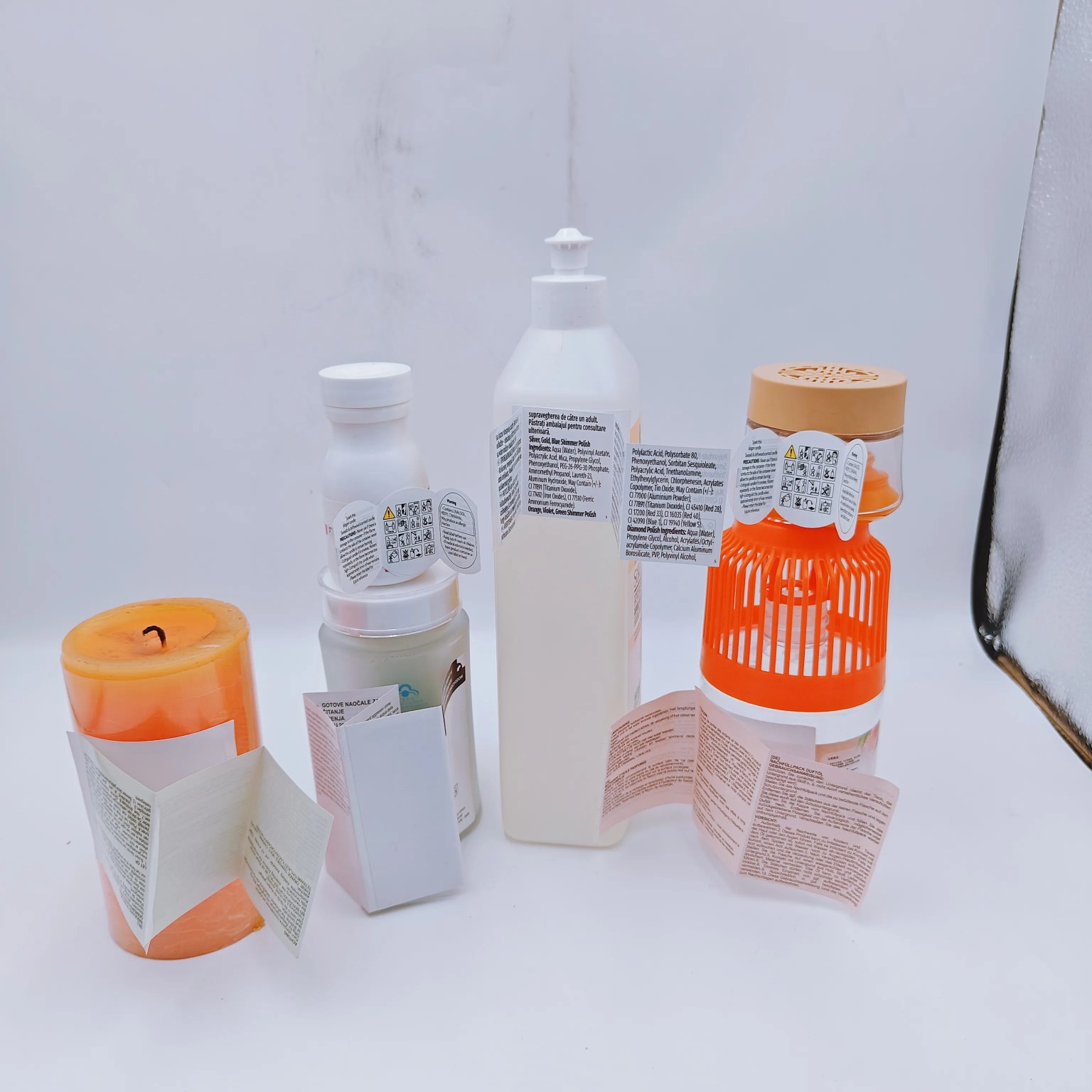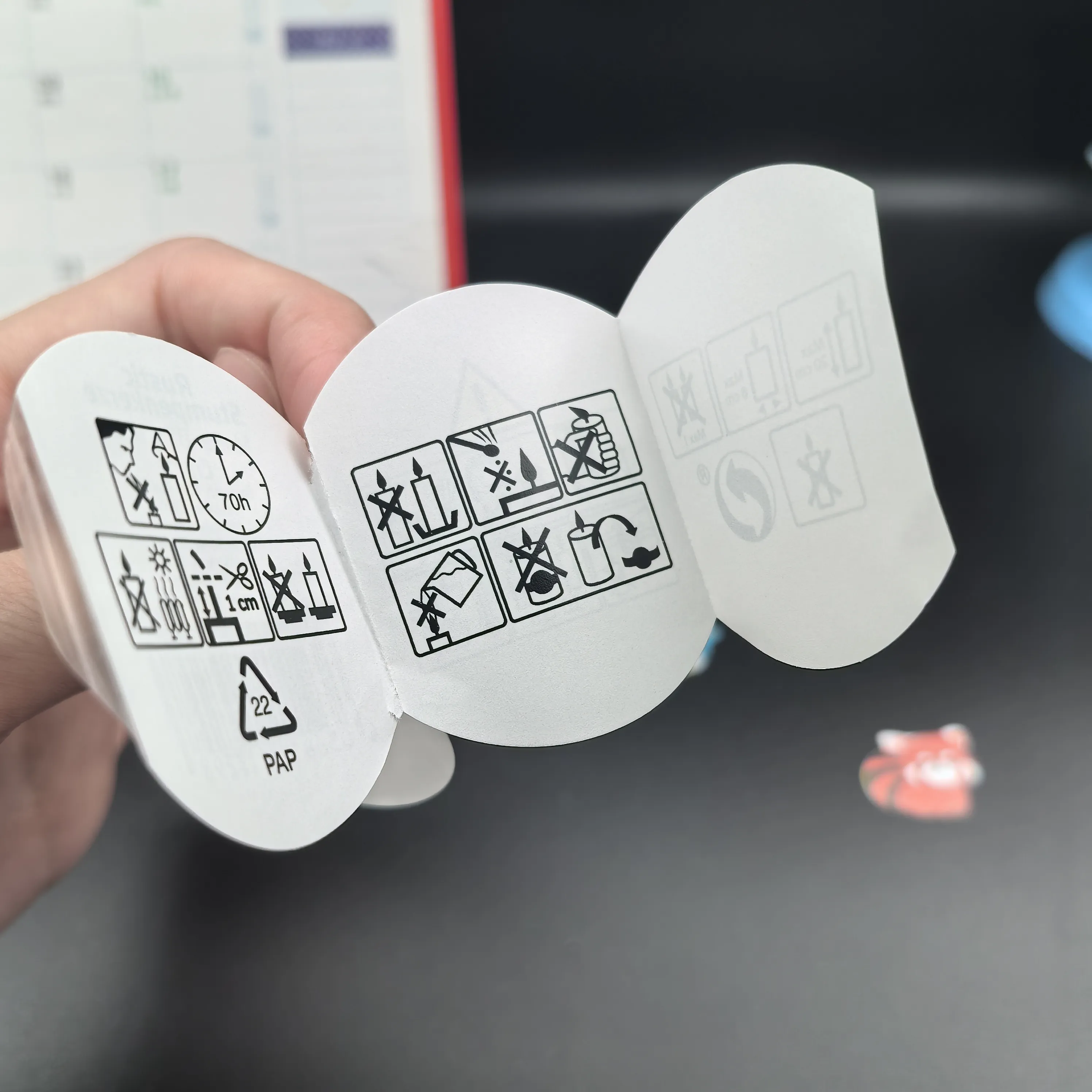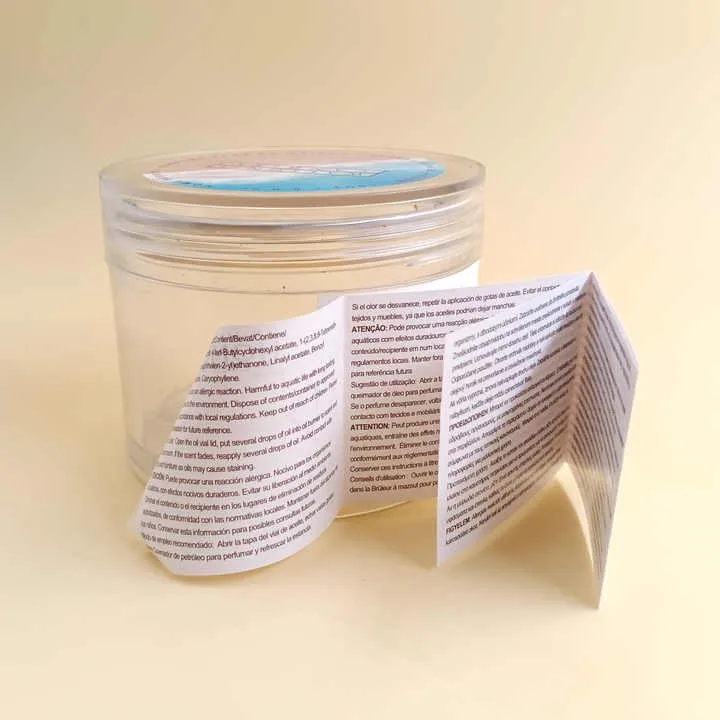 विभिन्न प्रकार की मोमबत्तियों जैसे सुगंधित, मोम या सजावटी मोमबत्तियों के लिए, फोल्ड आउट बुकलेट लेबल बहु-आयामी जानकारी को एकीकृत करने के लिए आदर्श होते हैं। उनमें आवश्यक सुरक्षा दिशानिर्देश शामिल हो सकते हैं जैसे ज्वलनशील पदार्थों से दूर रहना, जलने की उचित अवधि और बुझाने के तरीके।