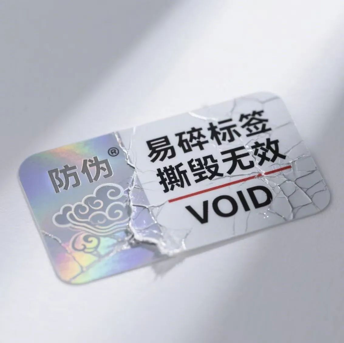 1। उच्च नाजुकता: आधार सामग्री में स्वयं उच्च भंगुरता है। एक बार फाड़ बल के अधीन होने के बाद, यह तुरंत अनियमित छोटे टुकड़ों में टूट जाएगा, पूरी तरह से छीलने में असमर्थ या फिर से चढ़ा हुआ। यह शारीरिक रूप से एंटी-काउंटरफिटिंग लेबल के पुन: उपयोग किए जाने की संभावना को अवरुद्ध करता है।