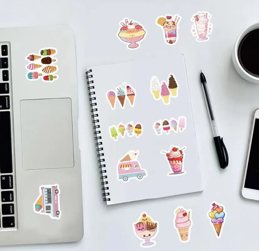 घर की सजावट:जीवित वातावरण में जीवन शक्ति और मस्ती जोड़ने के लिए, घर के रिक्त स्थान जैसे रेफ्रिजरेटर, दीवारों, दर्पण आदि पर आइसक्रीम स्टिकर स्टिक।