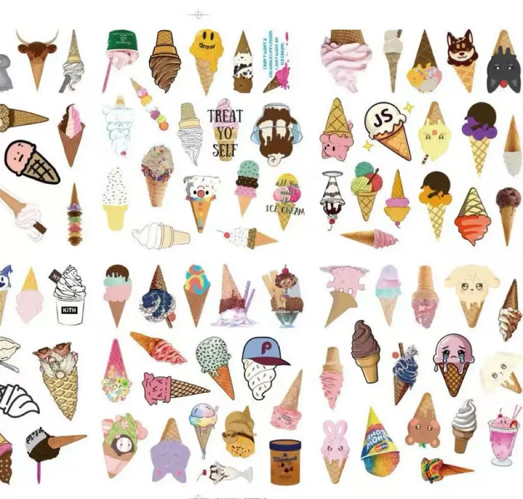 समृद्ध और अद्वितीय पैटर्न:दोहराव के बिना 50 अलग -अलग पैटर्न, दर्जनों आइसक्रीम श्रेणियों और शैलियों को कवर करते हुए, विभिन्न रचनात्मक जरूरतों को पूरा करते हैं।