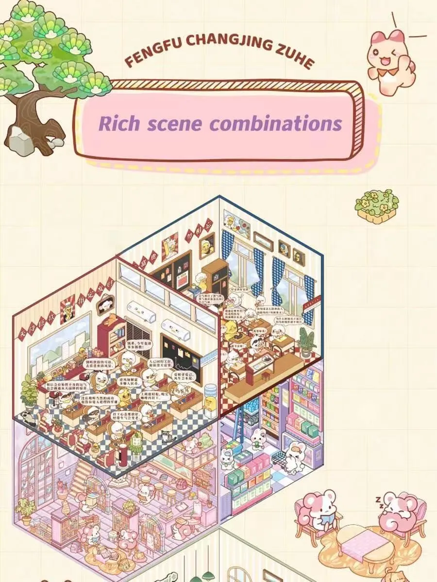 इस लघु दृश्य स्टिकर पुस्तक में प्रत्येक खंड में 10 अलग-अलग थीम वाले दृश्य हैं, जो विभिन्न शैलियों को कवर करते हैं। यह तनाव से राहत, मनोरंजन, बौद्धिक विकास और सजावट कार्यों को जोड़ता है, जो इसे बच्चों, किशोरों और युवा वयस्कों के लिए उपयुक्त बनाता है। यह दैनिक अवकाश, माता-पिता-बच्चे की बातचीत और त्योहारों के लिए उपहार के रूप में एक उत्कृष्ट विकल्प है।