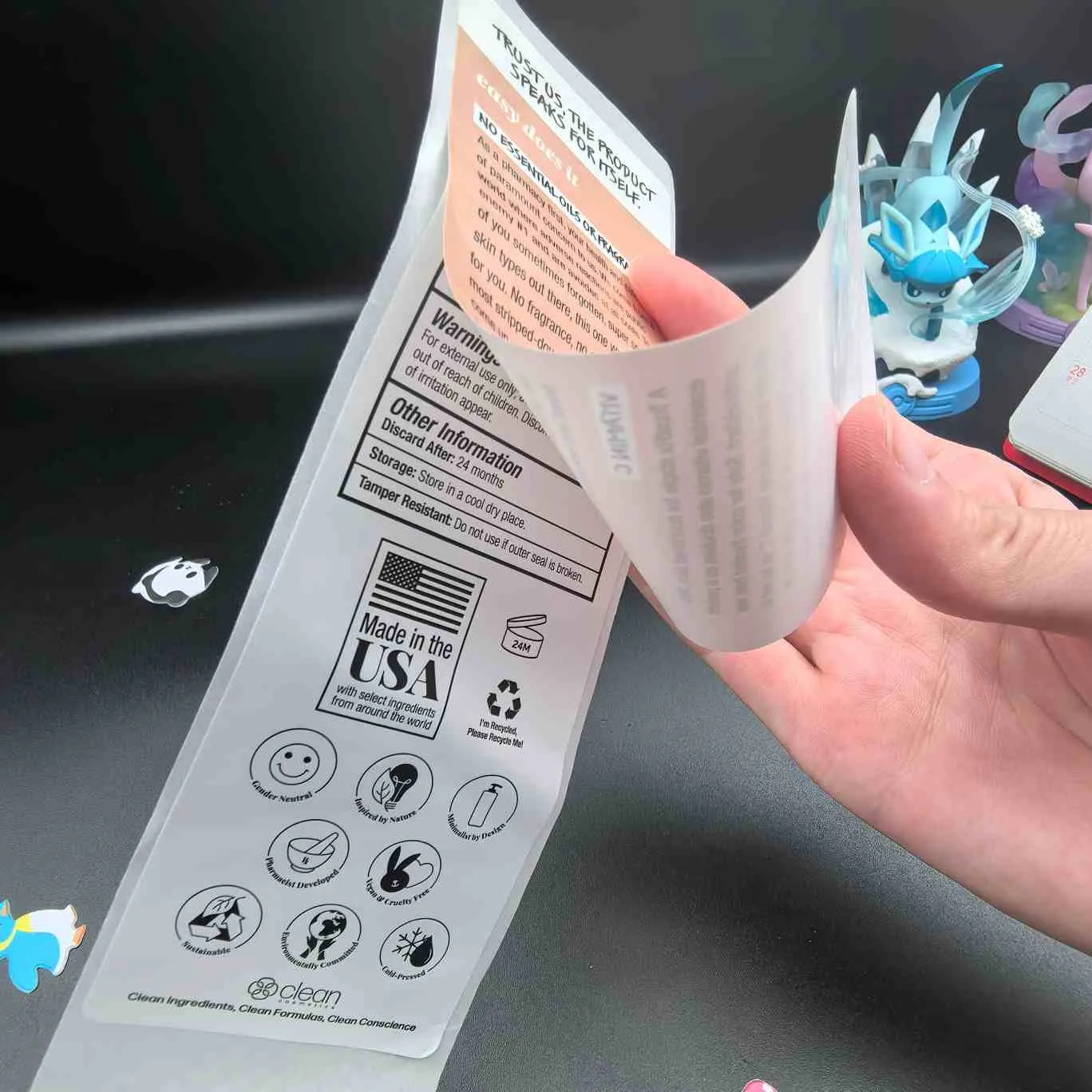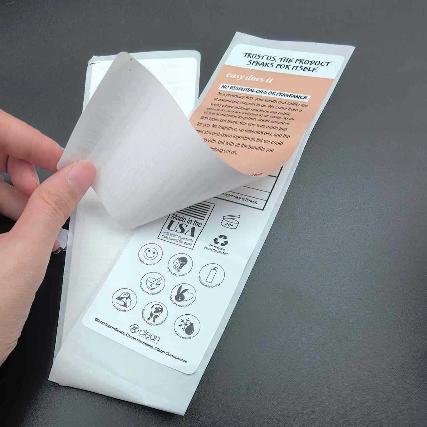 लेबल छीलें और पढ़ें:सबसे बुनियादी प्रकार, इसे कॉस्मेटिक लेबल के लिए मल्टीलेयर भी कहा जाता है। ऊपरी परत को छीलना आसान होता है, और आंतरिक परत में विस्तारित जानकारी होती है। इसका उपयोग अक्सर चेहरे के मास्क, सीरम और अन्य छोटे पैकेज वाले उत्पादों के लिए किया जाता है।
