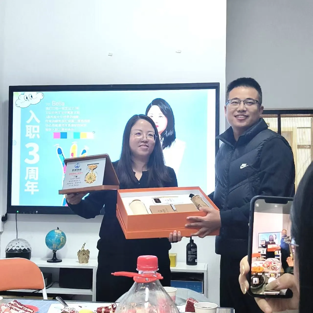 एक अद्भुत आश्चर्य के रूप में, बॉस गाओ ने व्यक्तिगत रूप से टॉम और एला और प्रबंधक बेला को सुंदर कार्य वर्षगांठ उपहार भी प्रस्तुत किए। ये विशेष टोकन पिछले वर्षों में उनके योगदान की एक ईमानदार स्वीकृति हैं और कंपनी के साथ उनकी निरंतर वृद्धि के लिए हमारी शुभकामनाएं हैं।