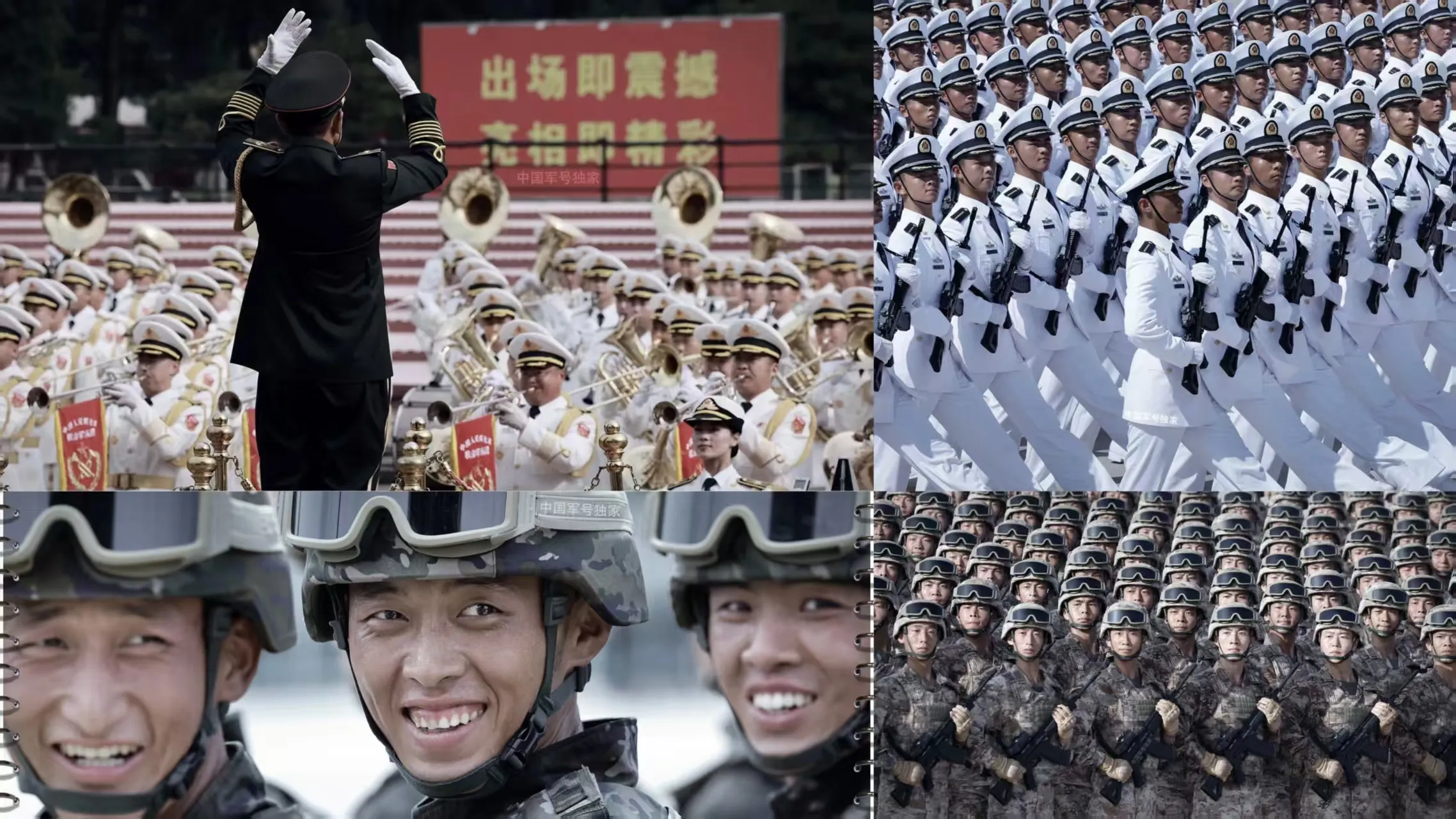 तियानमेन स्क्वायर में, 45 फॉर्मेशन और इकॉन्सन ने अनुक्रम में पारित किया, और एक संयुक्त सैन्य बैंड जिसमें एक हजार से अधिक अधिकारियों और सैनिकों से मिलकर युग की शक्तिशाली आवाज़ें थीं।