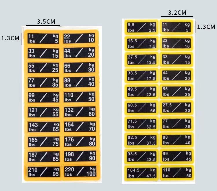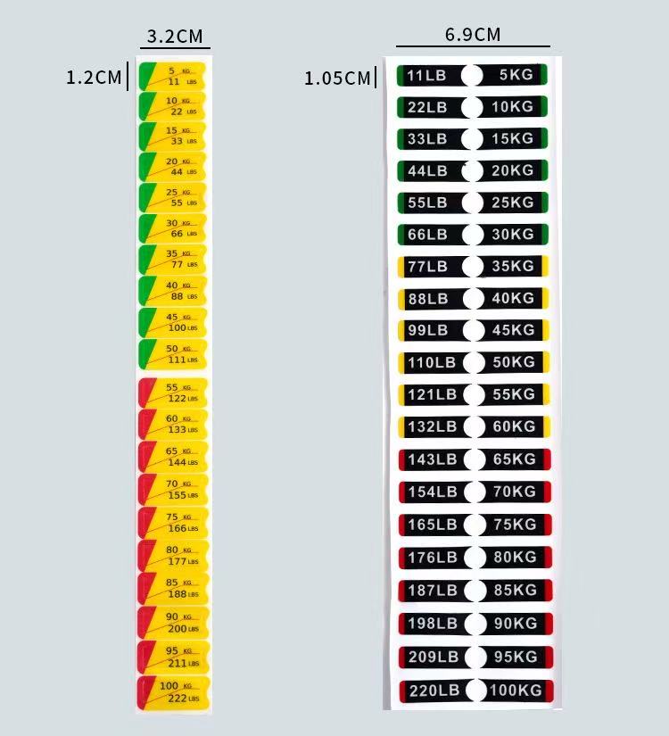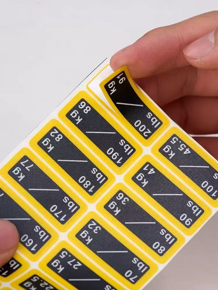फिटनेस उपकरण वजन ब्लॉकों के लिए ये वजन स्टिकर एक प्रकार के पहचान स्टिकर हैं जो विशेष रूप से फिटनेस गियर के वजन को लेबल करने के लिए डिज़ाइन किए गए हैं। वे आम तौर पर पीवीसी सामग्री से बने होते हैं, और आप विशिष्ट आयामों के लिए उत्पाद पैरामीटर तालिका देख सकते हैं। वजन के मान स्टिकर पर स्पष्ट रूप से अंकित होते हैं, जिससे उपयोगकर्ता तुरंत उचित प्रशिक्षण वजन की पहचान और चयन कर सकते हैं।